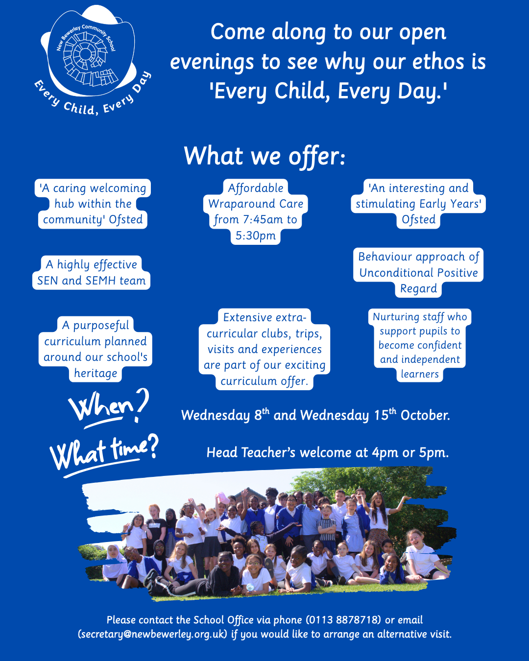 This vision reflects how New Bewerley Community School provides a stimulating environment and a caring space where very special children work hard, fulfil their potential and develop a genuine concern for the needs of others.