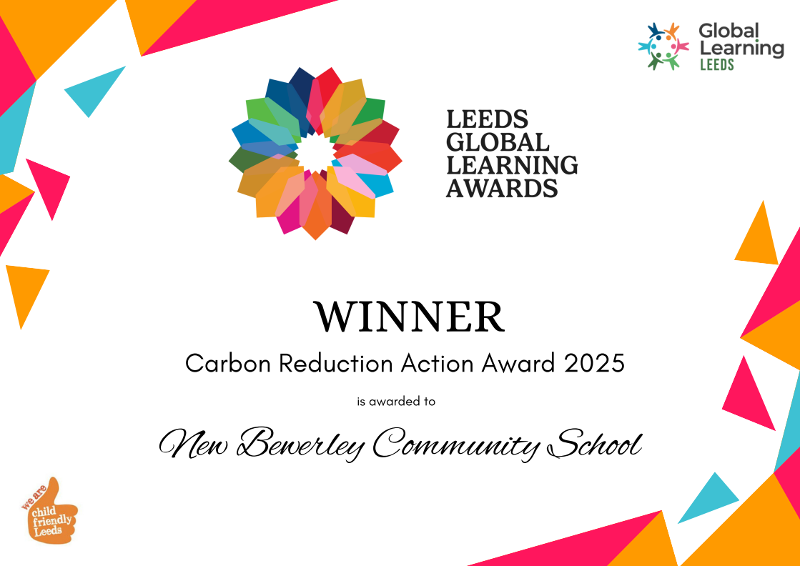 In May 2025, we won the Carbon Reduction Action Award from the Leeds Global Learning Awards for the work done to reduce our Carbon Footprint.